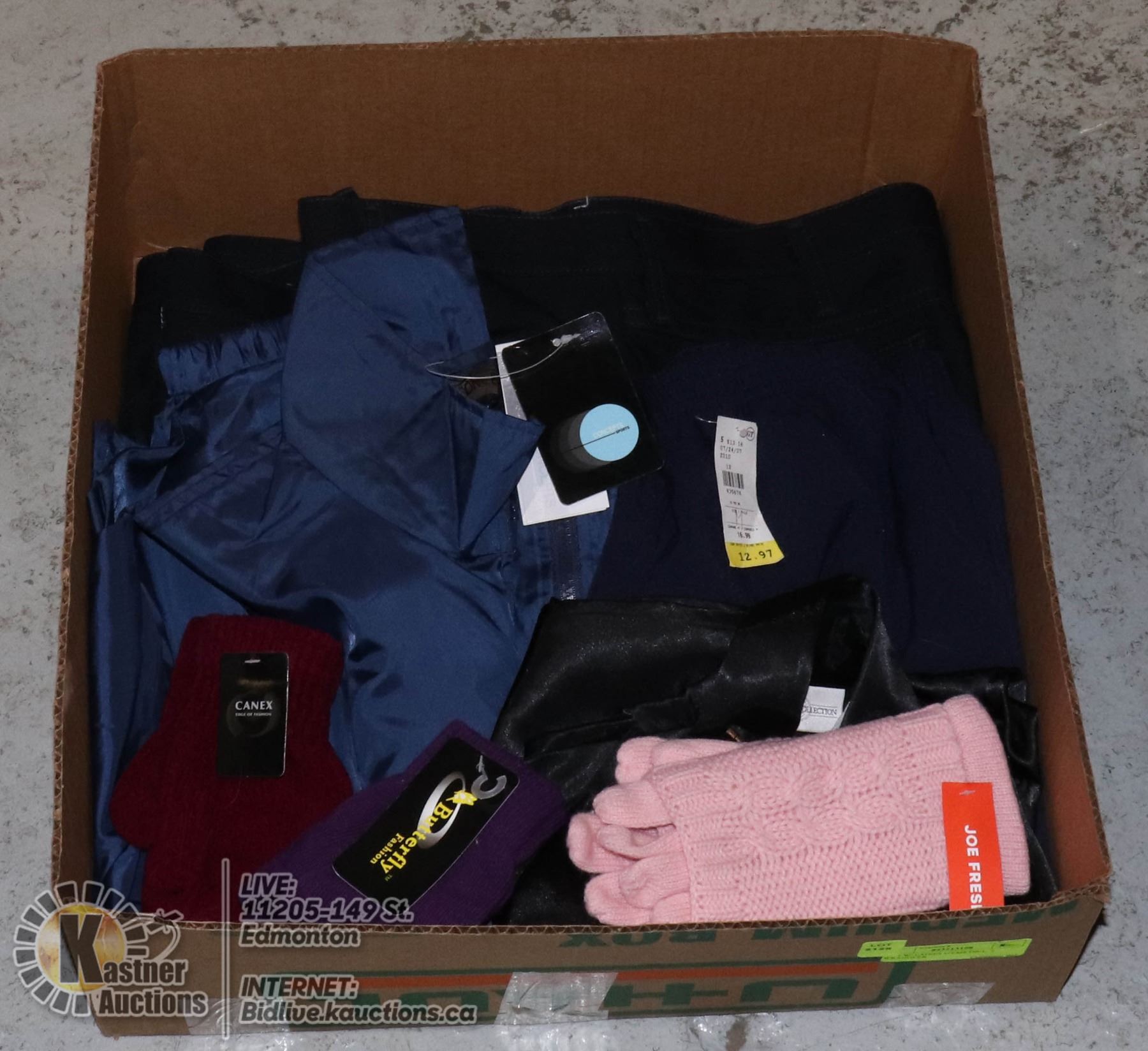WORK PANTS (36"X30"), BLUE CASUAL PANTS (SIZE M), PREMIER COLLECTION BLACK BLOUSE (SIZE M), NEW LADIES WIND BREAKER JACKET WITH LOGO (SIZE M) ETC