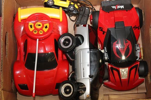 BOX W/ LARGE MAISTO CAR & OTHER CARS/TRUCKS