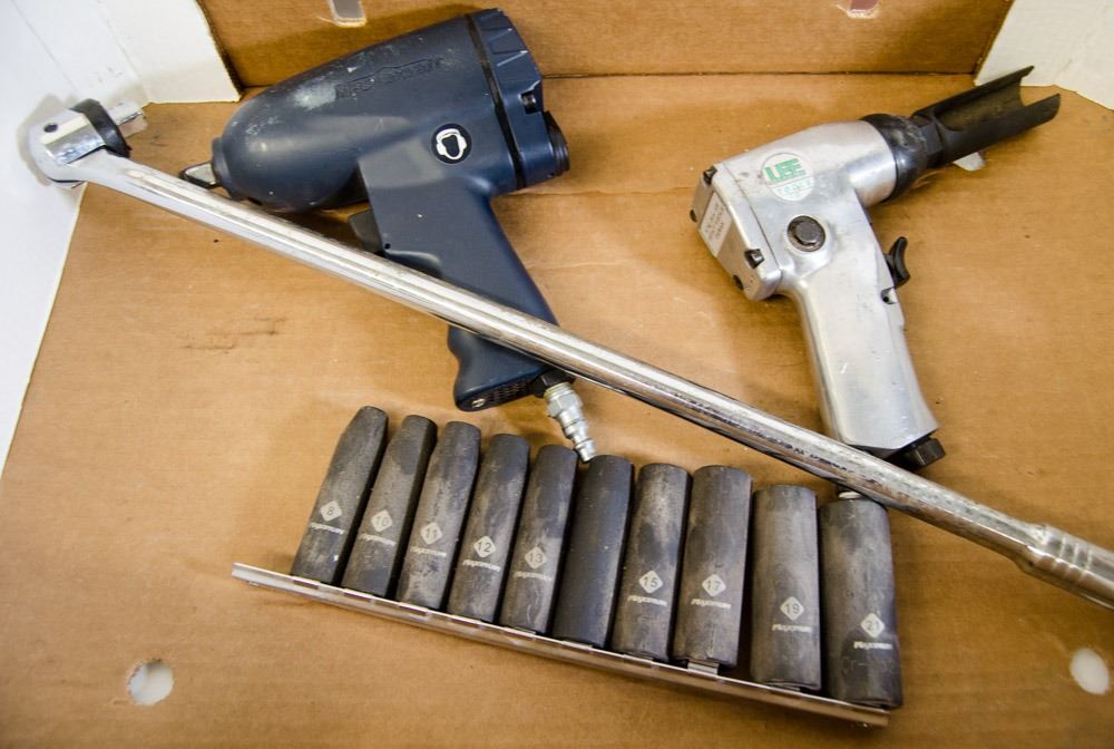 MASTERCRAFT 1/2"-IMPACT, LEE TOOLS 3/8"-IMPACT, SET OF 1/2"-DRIVE METRIC, DEEP IMPACT SOCKETS ON RACK, MASTERCRAFT HEAVY DUTY CHROME 1/2"-SWINGBAR - TOOLS