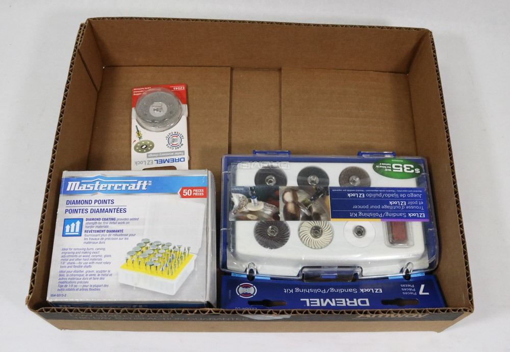 7-PC SANDING/POLISHING KIT, MASTERCRAFT 50-PC DIAMOND POINT KIT, DREMEL TILE CUTTER BLADE - TOOLS