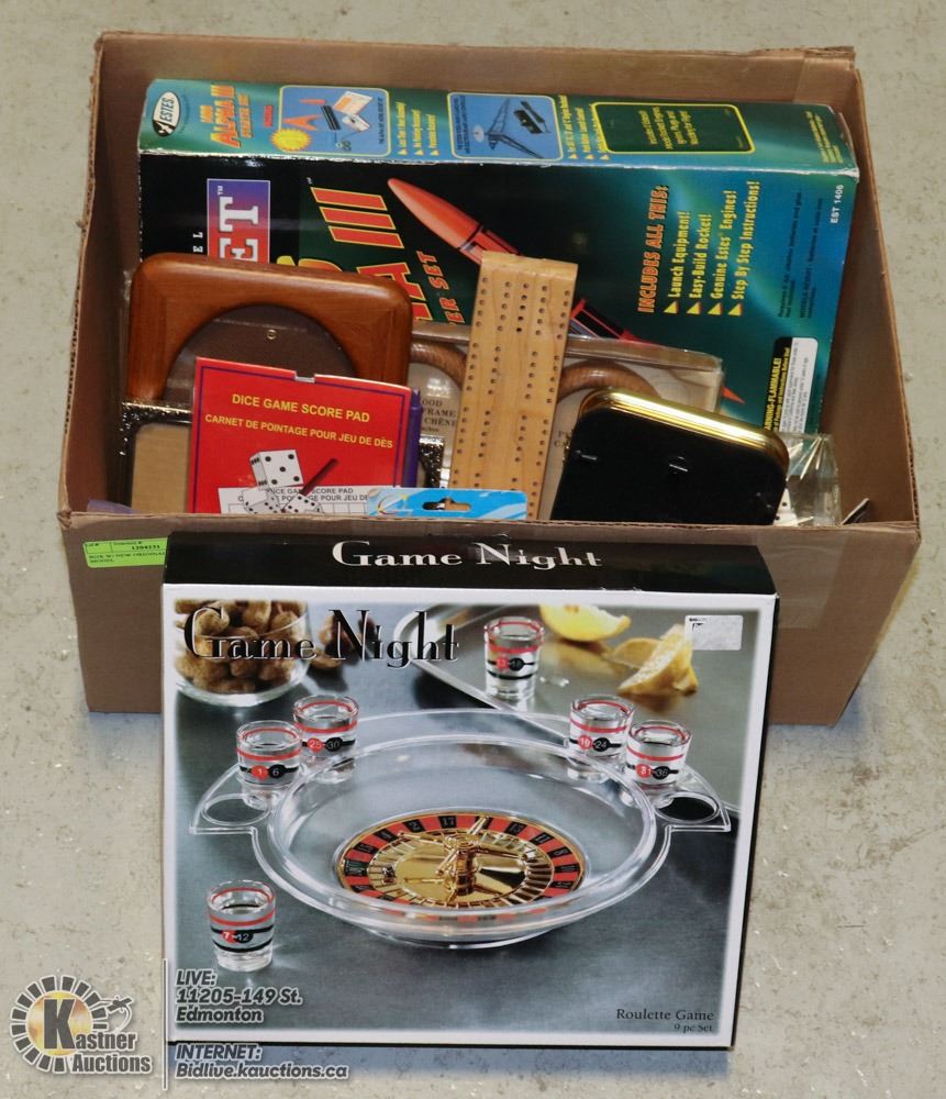 ROCKET 1406 ALPHA III STARTER SET, NEW ROULETTE GAME, NEW OAK & BRASS FRAMES, CRIB BOARD & CARDS, DICE GAME & DICE, AND MORE - GENERAL, HOUSEHOLD