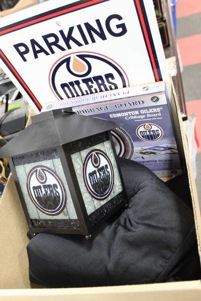 BOX W/ OILERS MEMORABILIA
