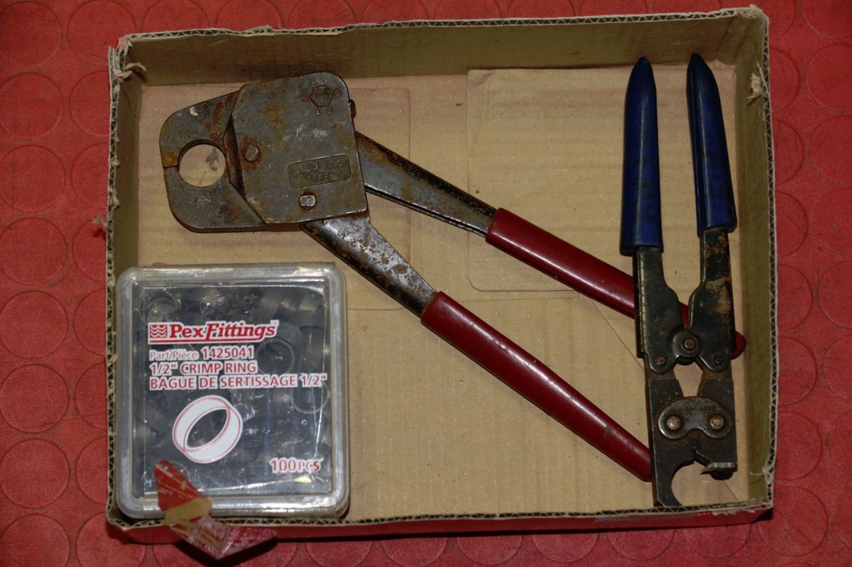 REMOVER PLIER AND TWO 100 PC BOXES OF 1/2 PEX CRIMP RINGS