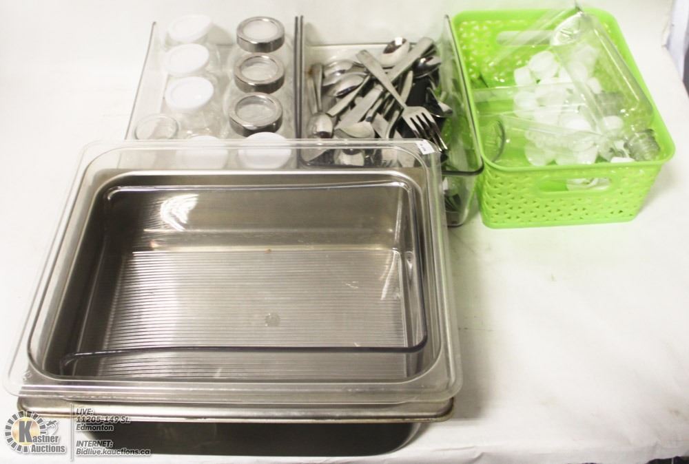 CONTAINERS, SS UTENSILS, METAL & PLASTIC 1/2 SIZE INSERTS
