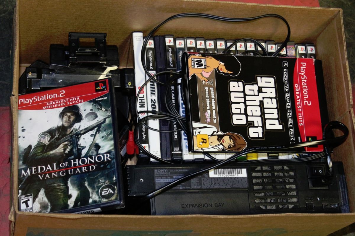 BOX W/ PS2 SYSTEM & 19 GAMES