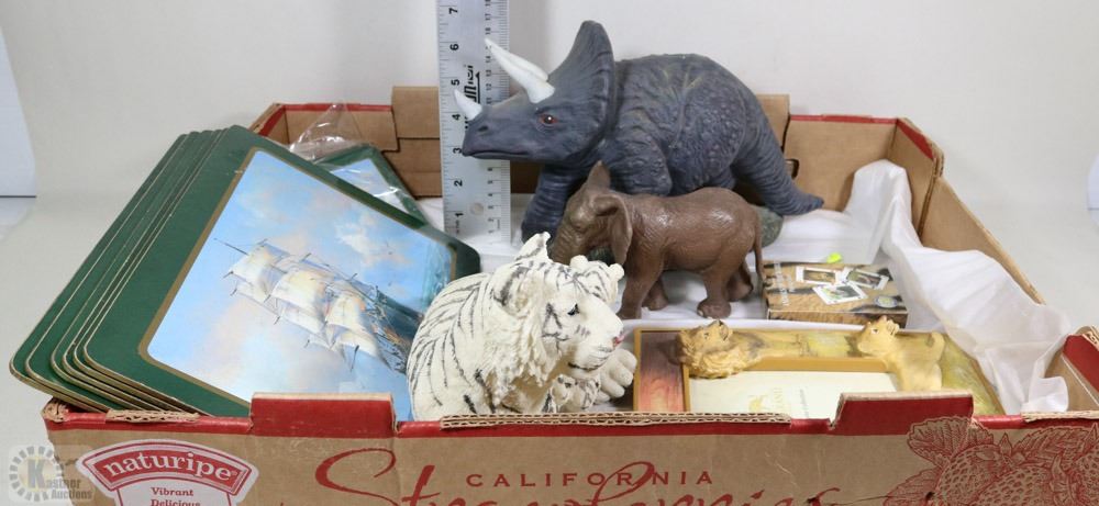 WILDLIFE ORNAMENTS INCL. TRICERATOPS, TIGER, ELEPHANT, NEW ANIMAL DECK OF CARDS, ETC.