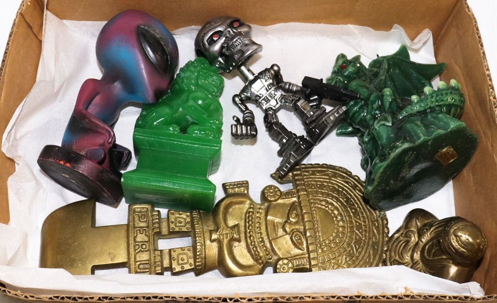 INCA WALL DECOR, DRAGON CANDLE, ALIEN & SKELETON FIGURINES - COLLECTIBLE