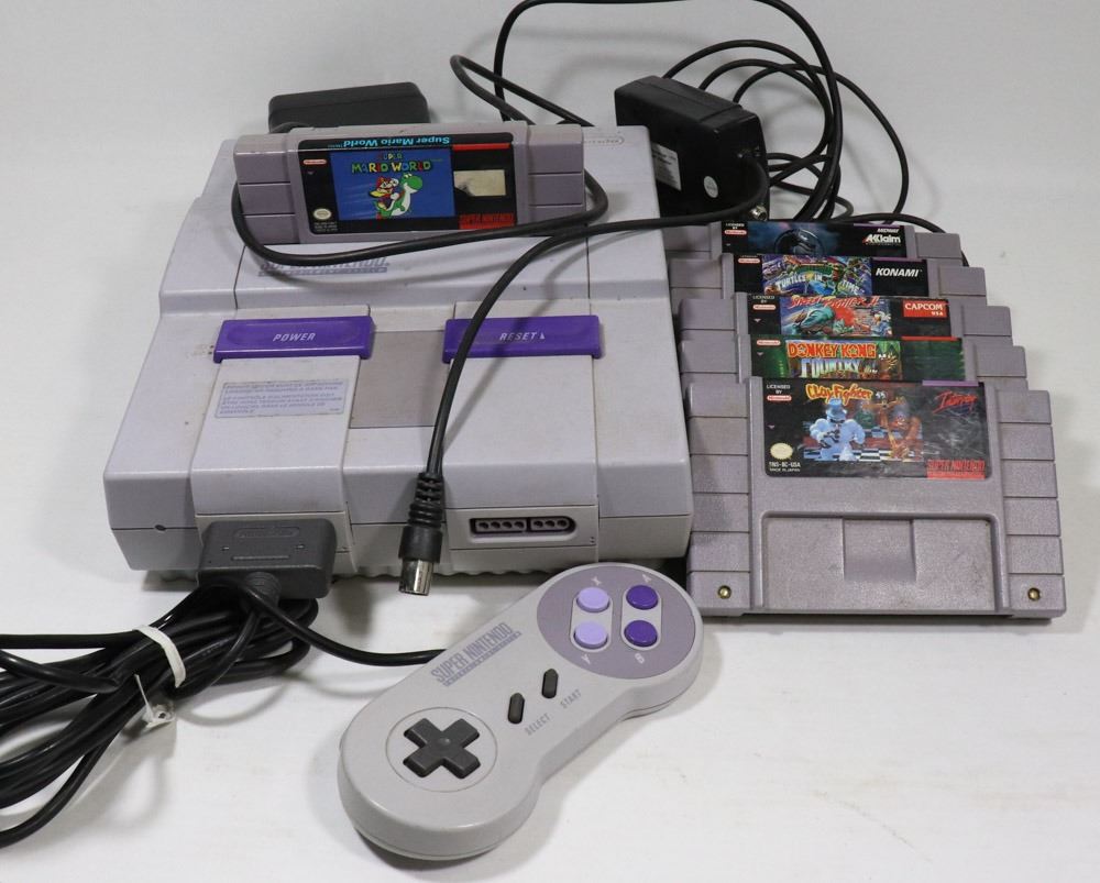 CORDS & 6 GAMES INCL. SUPER MARIO WORLD, DONKEY KONG COUNTRY, MORTAL COMBAT, ETC. (UNTESTED) - ELECTRONICS