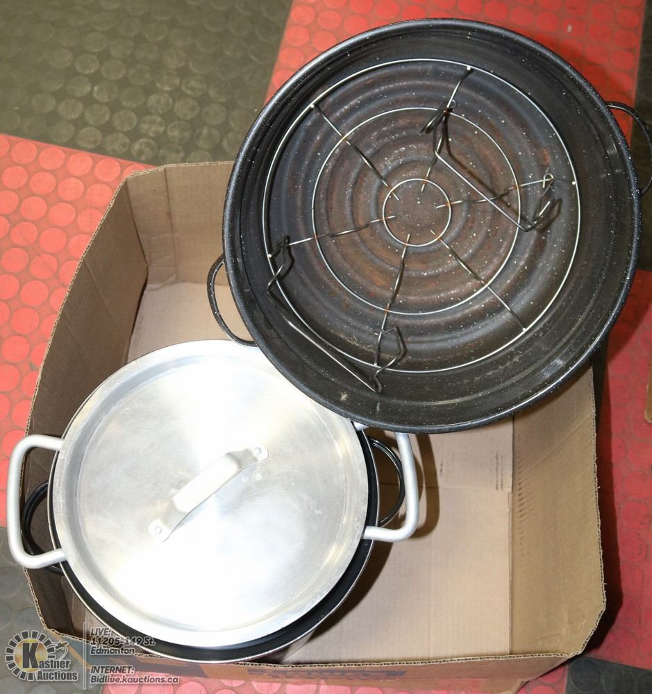 COOKWARE POT (ALUMINUM), LARGE BLACK POT & JAR COOKER POT W/INSERT - HOUSEHOLD