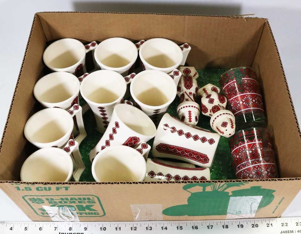 12 CUP SET, 4 GLASSES & SET OF SALT & PEPPER SHAKERS (NO CHIPS) - COLLECTIBLE