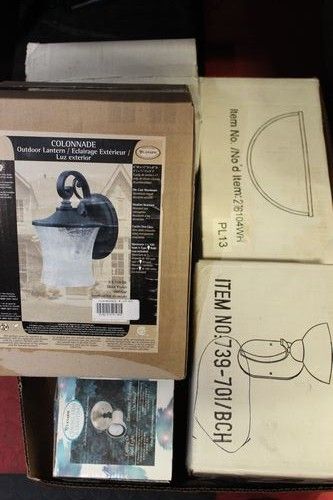 BOX W/ VARIOUS INDOOR & OUTDOOR LIGHT FIXTURES