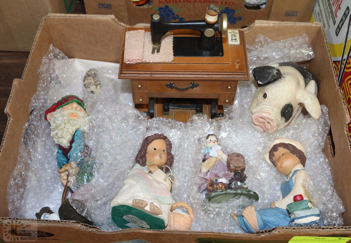 MACHINE WITH MOVING SPINDLE & PEDAL & OTHER COLLECTIBLE FIGURINES