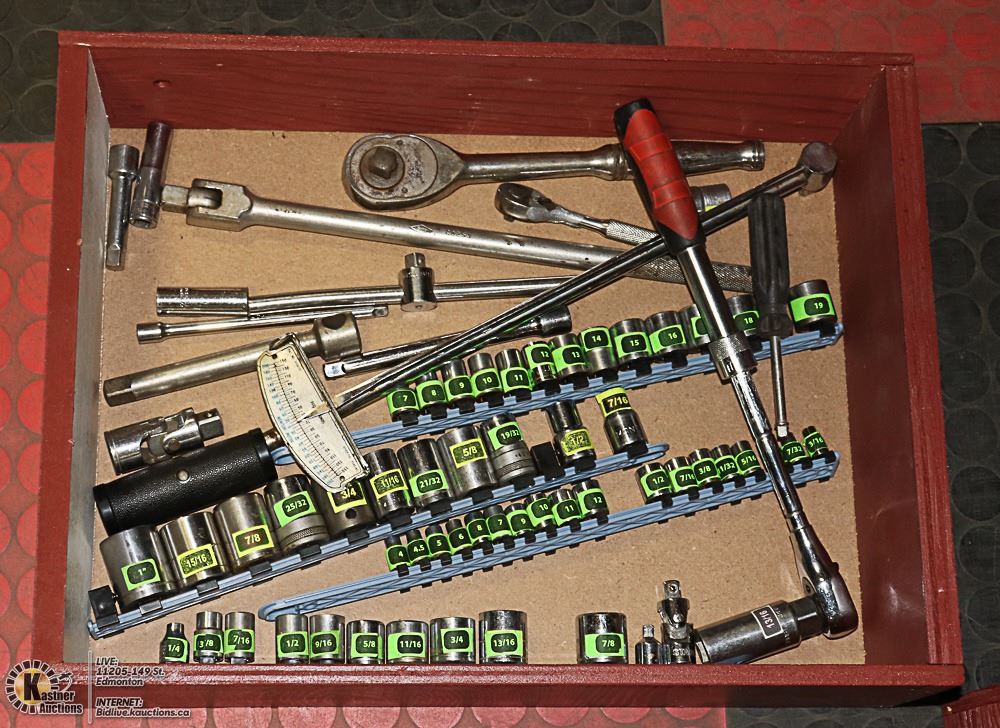 BOX WITH 1/4, 3/8 & 1/2 DRIVE MARKED SOCKETS