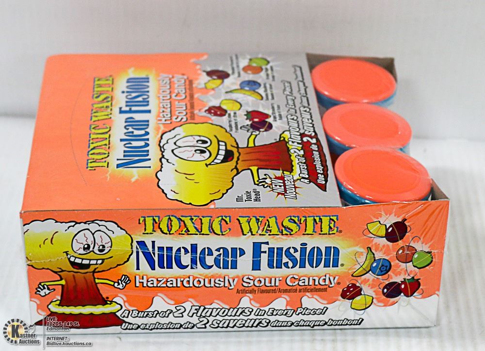 BOX WITH 12 42G DRUMS OF TOXIC WASTE SOUR CANDYS