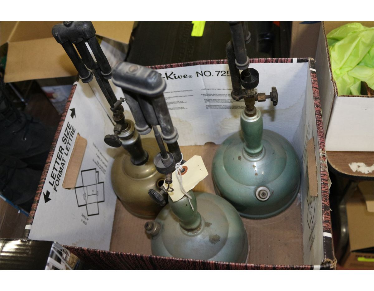 BOX WITH 3 ANTIQUE GAS LANTERNS