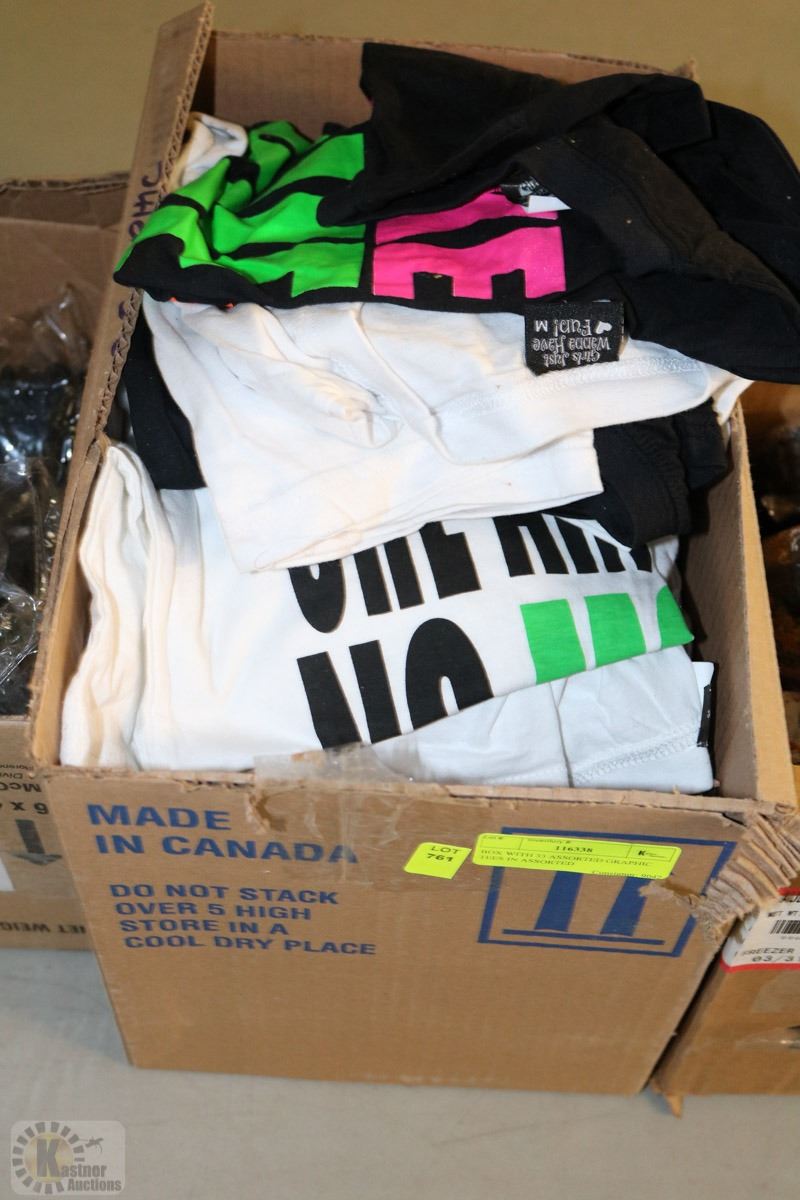BOX WITH 33 ASSORTED GRAPHIC TEES IN ASSORTED
