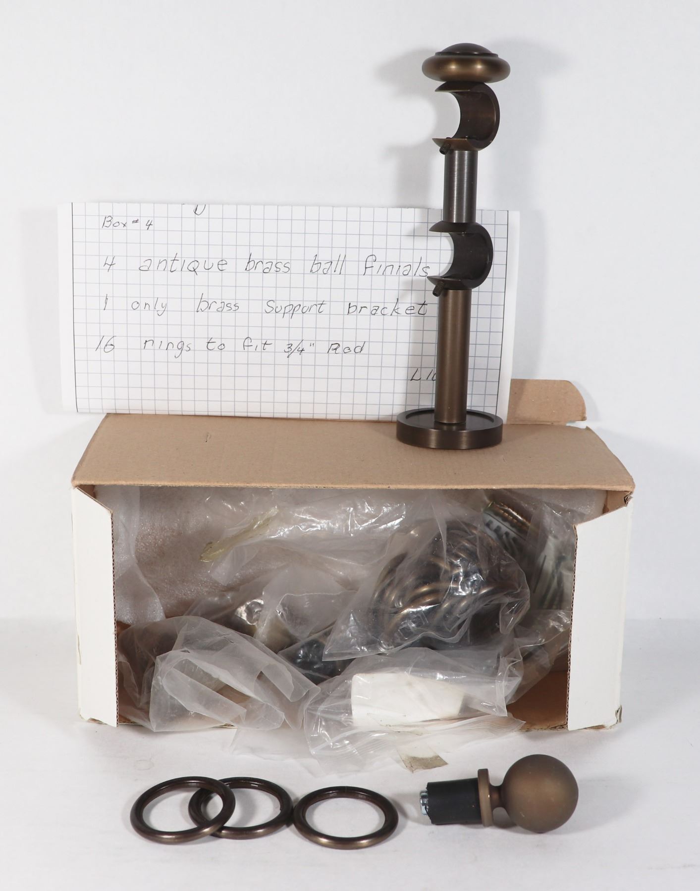 BOX WITH 4 ANTIQUE BRASS FINISH BALL FINALS, 1