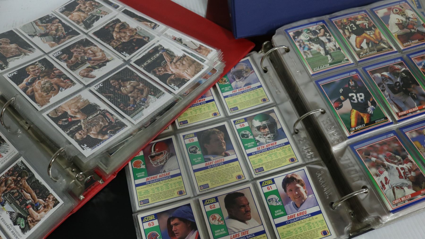 BOX WITH 4 ASSORTED BINDERS OF FOOTBALL CARDS