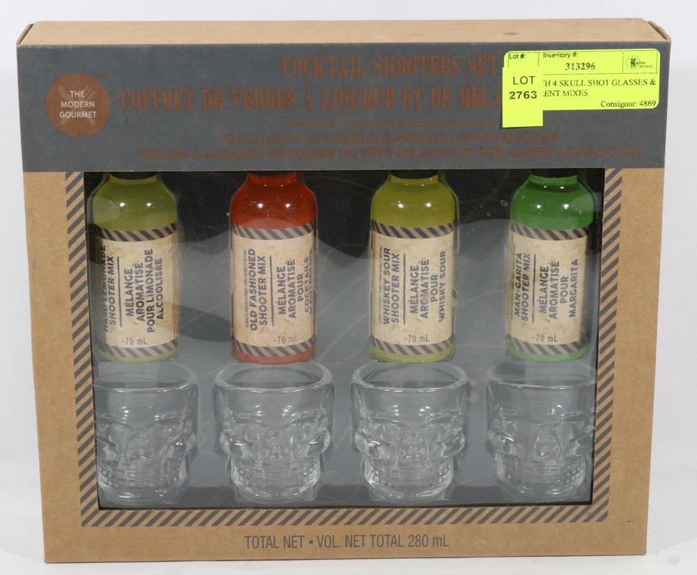 BOX WITH 4 SKULL SHOT GLASSES & 4 DIFFERENT MIXES