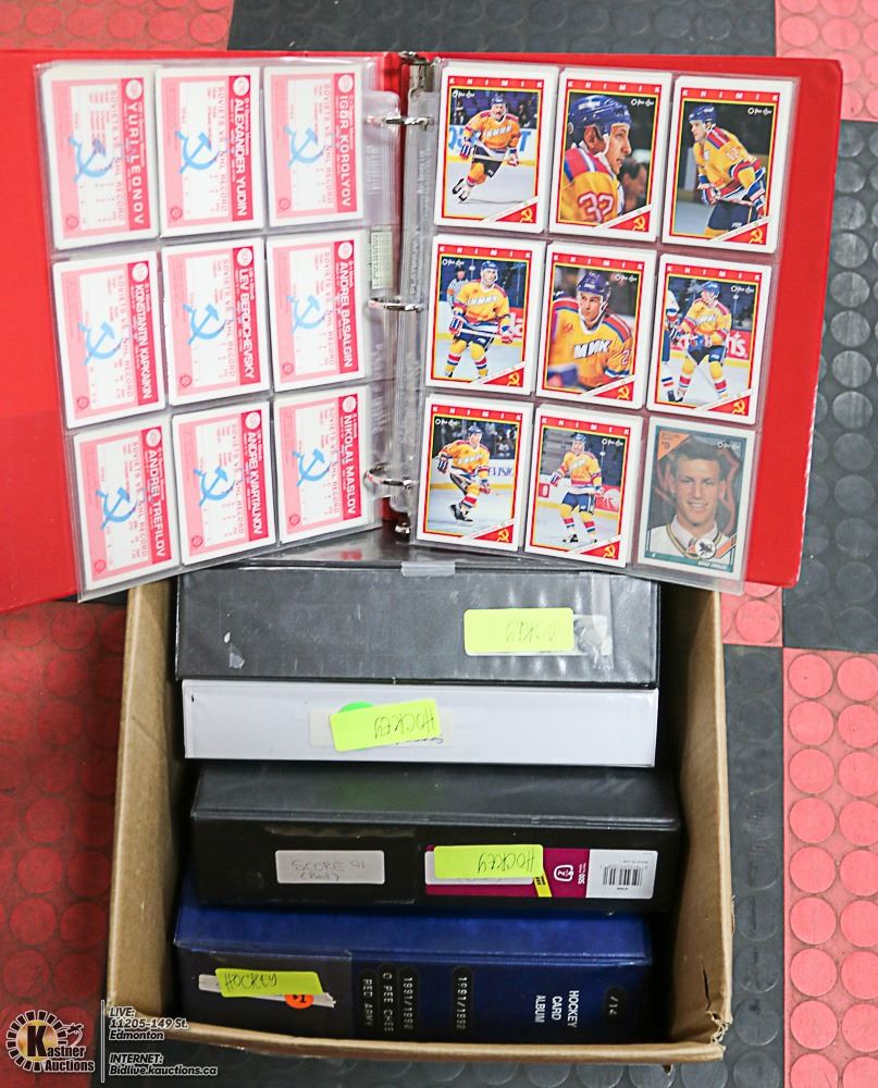 BOX WITH 5 ASSORTED BINDERS OF HOCKEY CARDS