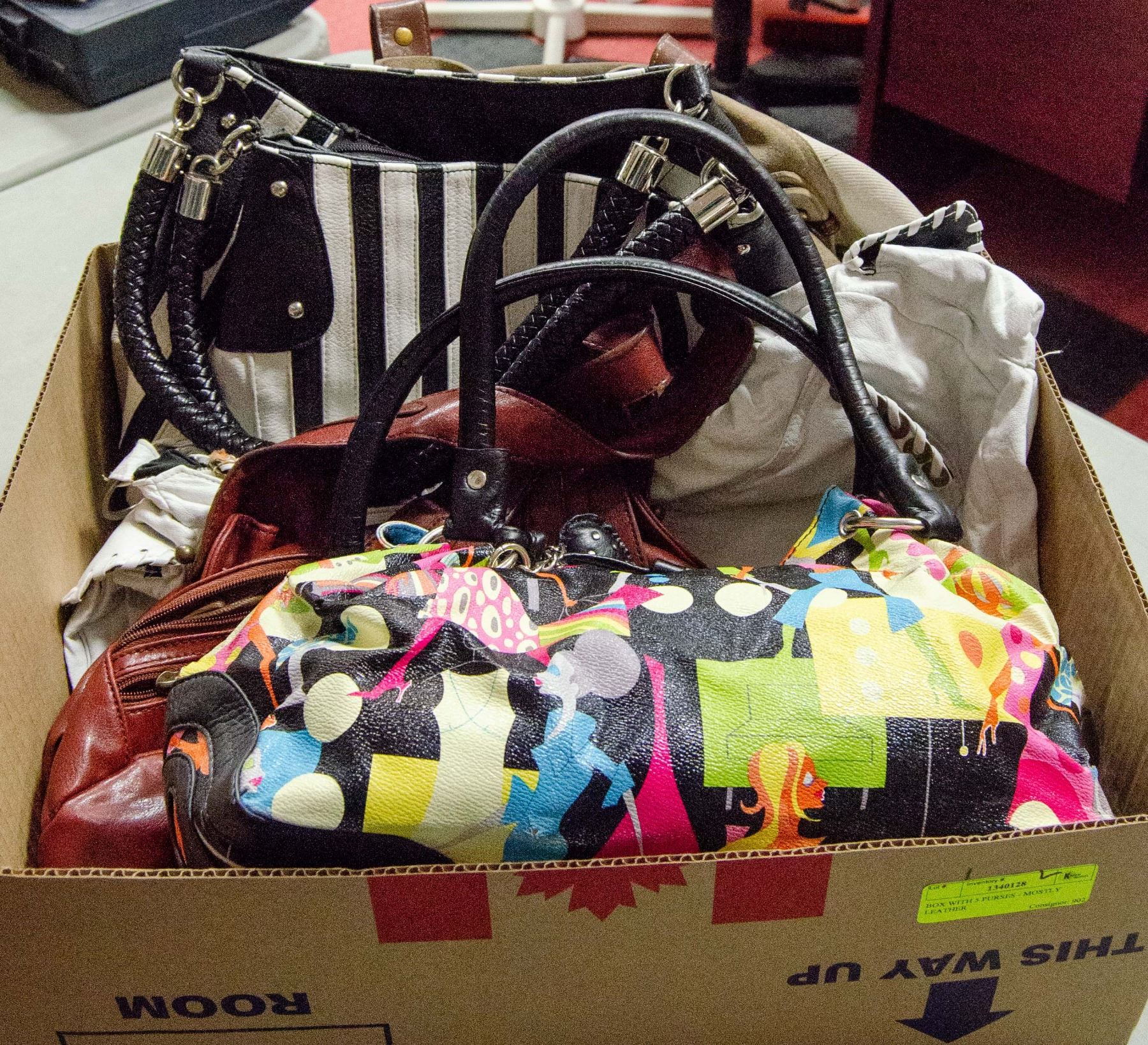 BOX WITH 5 PURSES - MOSTLY LEATHER