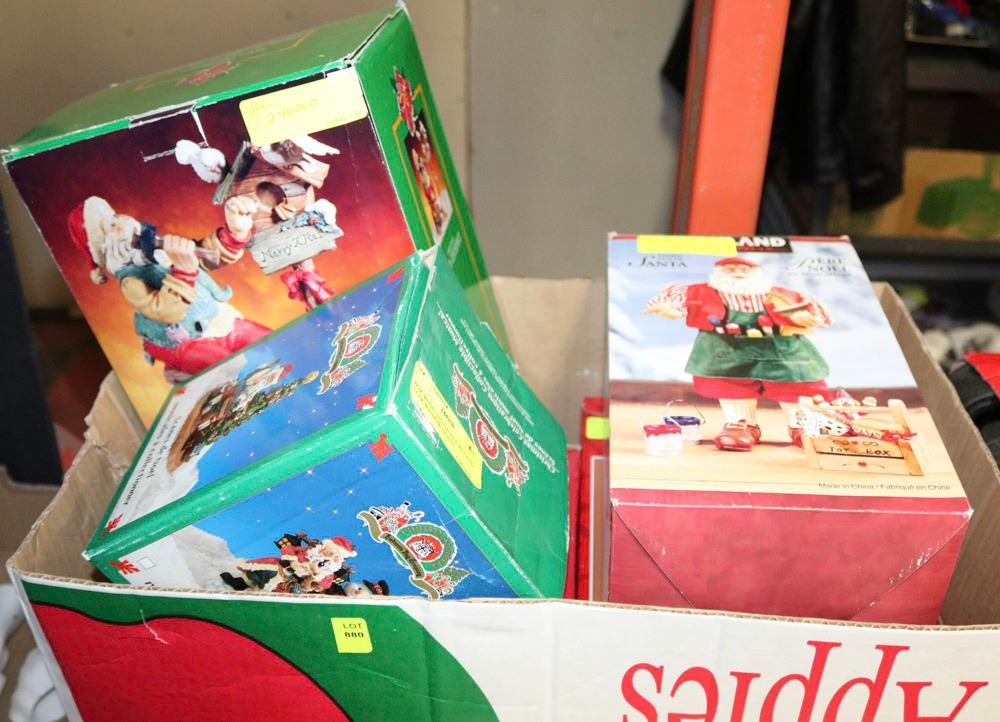 BOX WITH 5 SANTA FIGURES AND STAR WINDOW LIGHTS