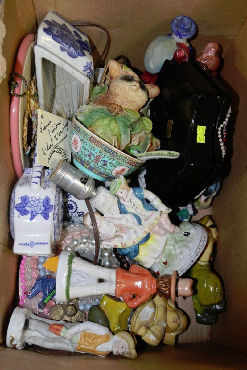 LEEMUR AND PORCELAIN FIGURAL LAMP