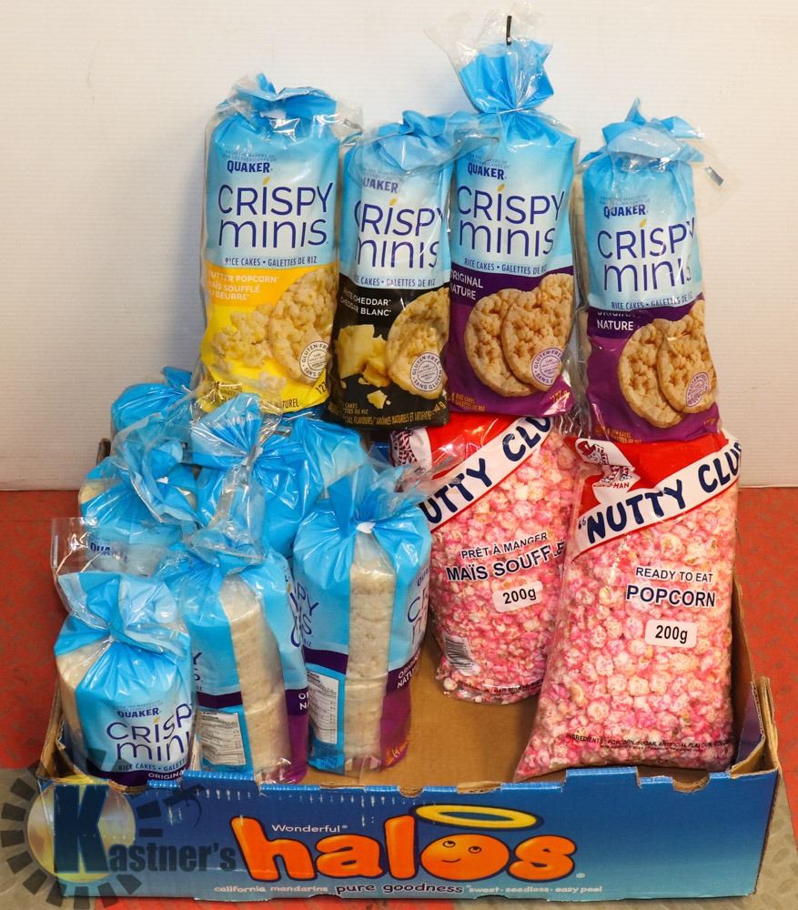 BOX WITH ASSORTED CRISPY MINIS AND PINK POPCORN