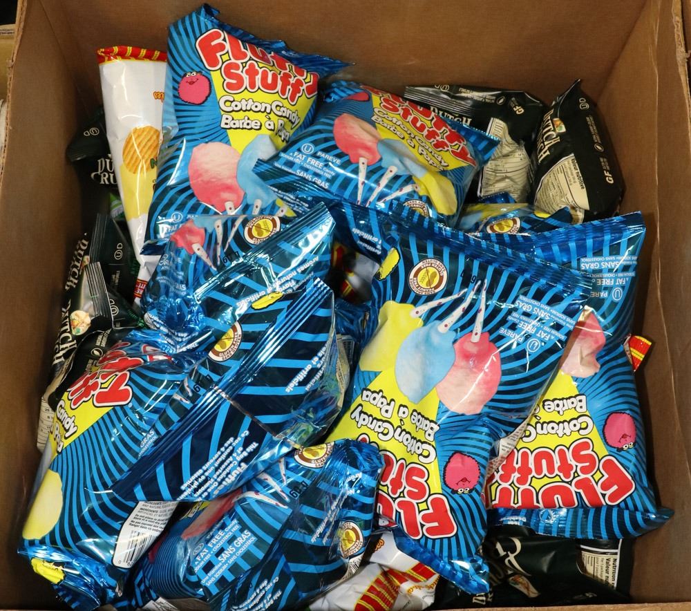 BOX WITH ASSORTMENT OF CHIPS & COTTON CANDY