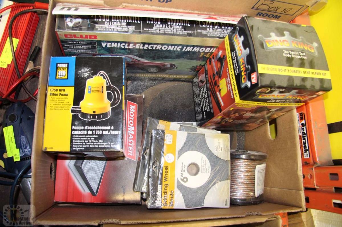 BOX WITH BILGE PUMP, GRINDING WHEELS, ETC