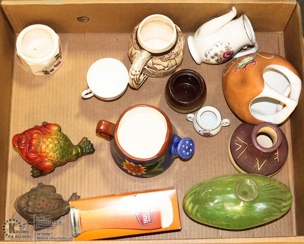 HAND MADE STEIN, FROG WITH COIN ORNAMENT AND MORE . COLLECTIBLES. HOME