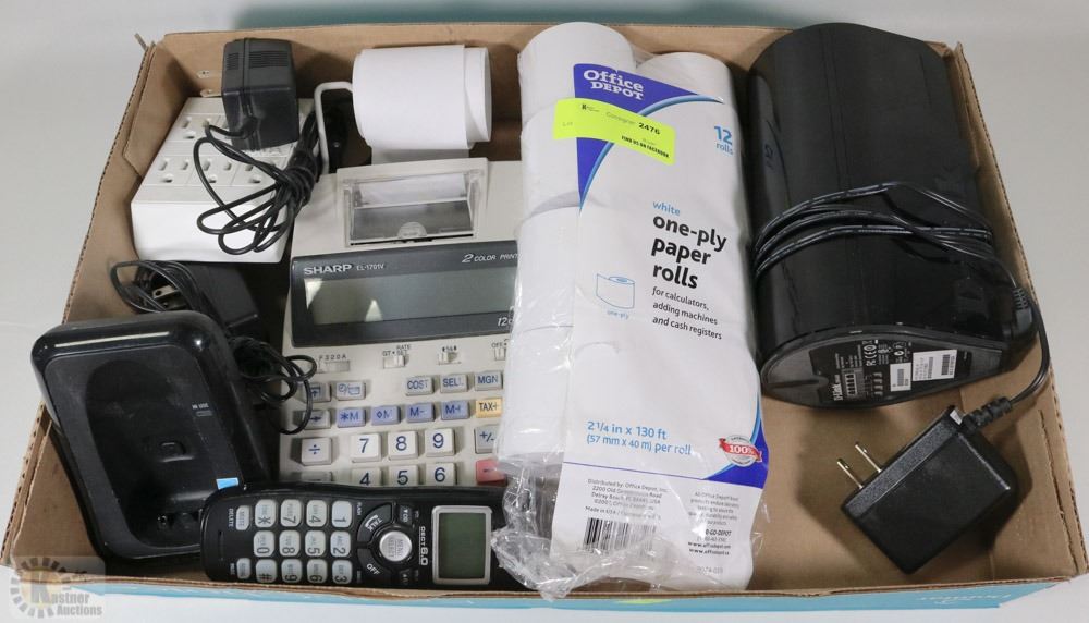 BOX WITH D-LINK ROUTER , PRINTING CALCULATOR ETC.