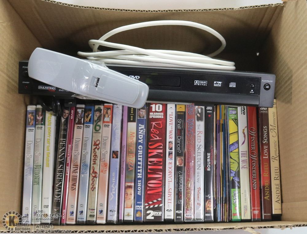 BOX WITH DVD'S AND DIAMOND DVD PLAYER