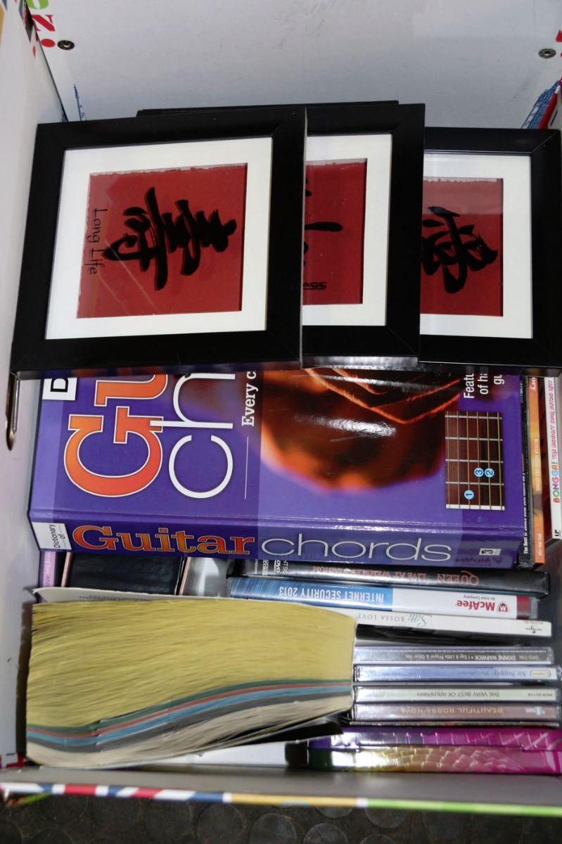 BOX WITH DVD'S, CD'S BOOKS ETC