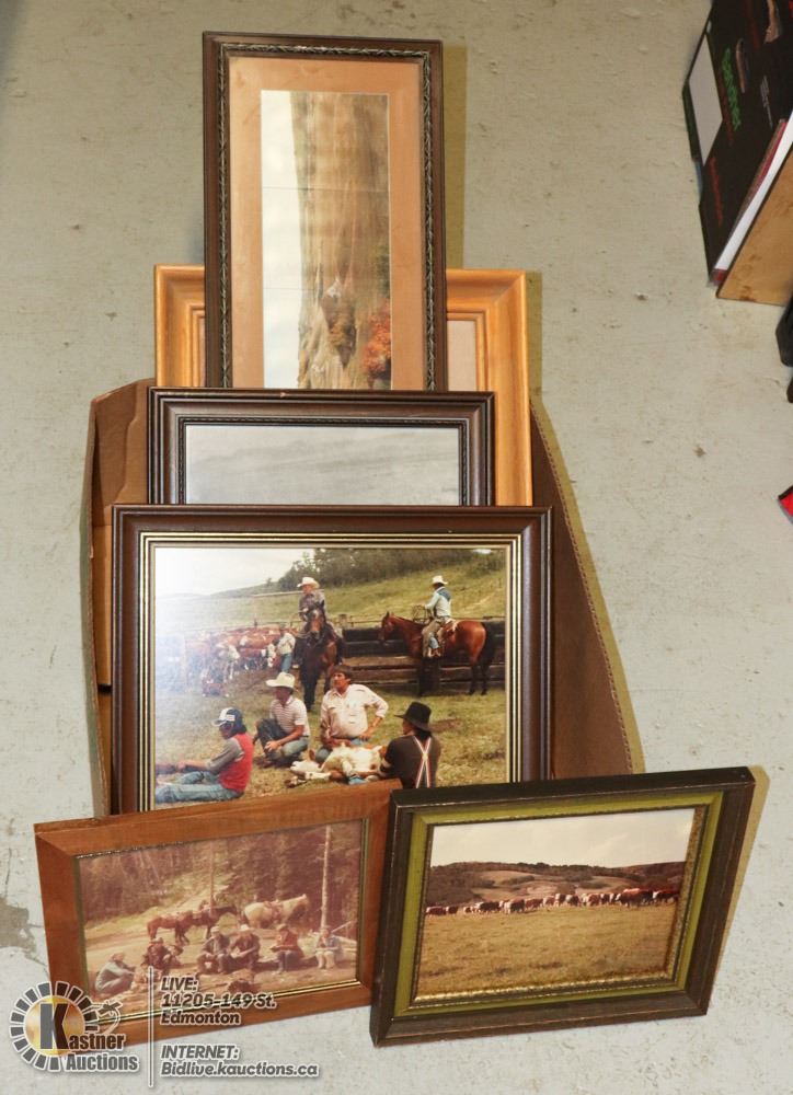 AUTHENTIC COWBOY PICTURES IN FRAMES - 8 PICTURES, SMALL TO MED. - VINTAGE