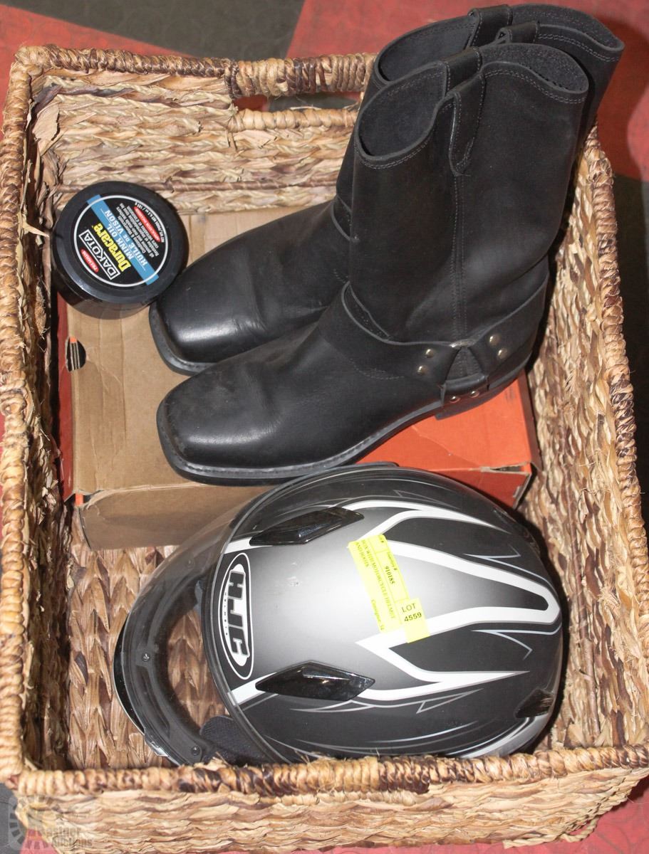 BOX WITH MOTORCYCLE HELMET AND BOOTS
