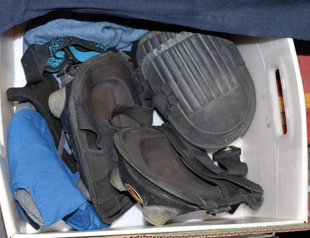 BOX WITH KNEE PADS, WORK LIGHTS AND BALACLAVAS