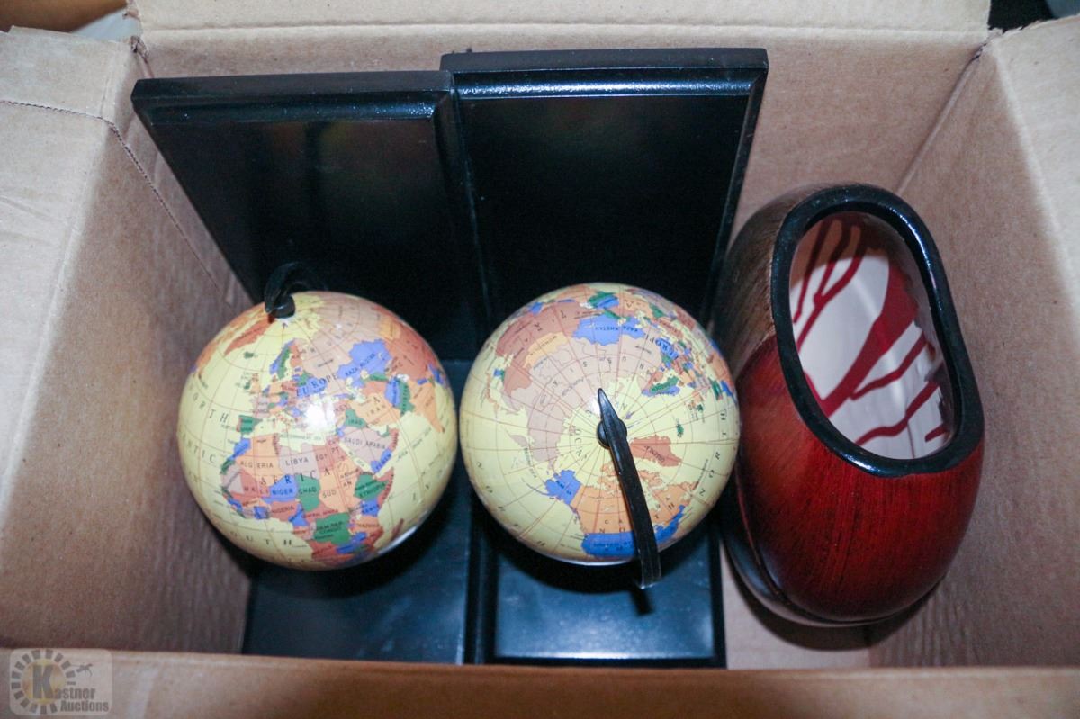 BOX WITH MINI GLOBES AND SHOWHOME DECORATIONS