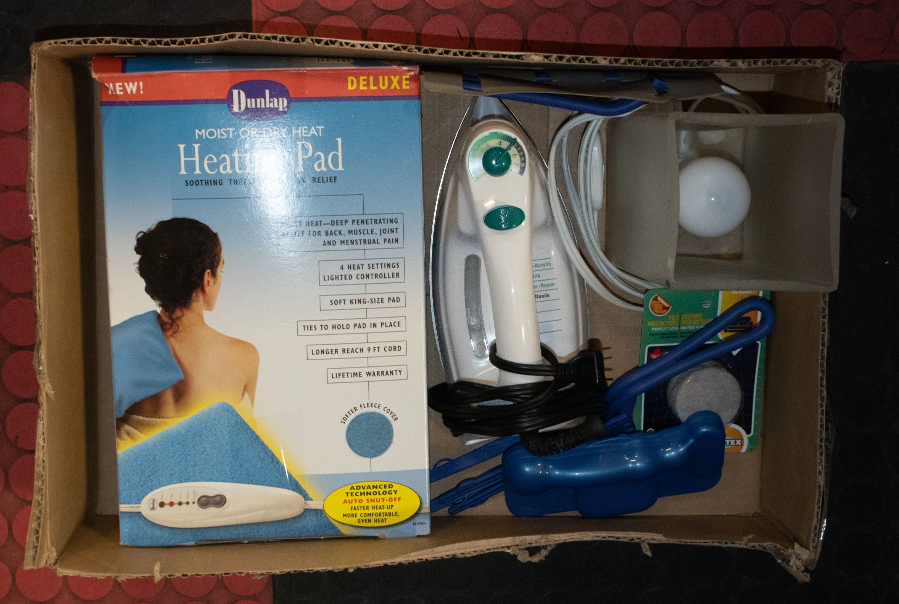 BOX WITH MOIST OR DRY HEATING PAD, LAMP