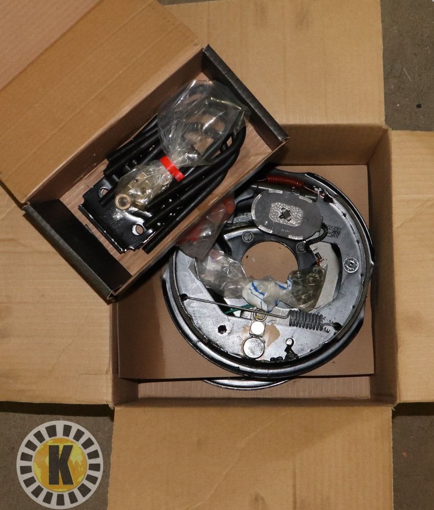 BOX WITH NEW TRAILER BRAKE, U-BOLTS AND CONNECTORS
