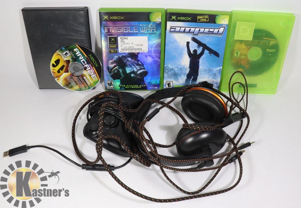 ACCESSORIES INCL. LTD. EDITION TURTLE BEACH, CALL OF DUTY II, GAMING HEADPHONES, CONTROLLER, 4 GAMES, CRIMSON SKYS, AMPED, DUES EX, ARCADE - GENERAL, ELECTRONICS