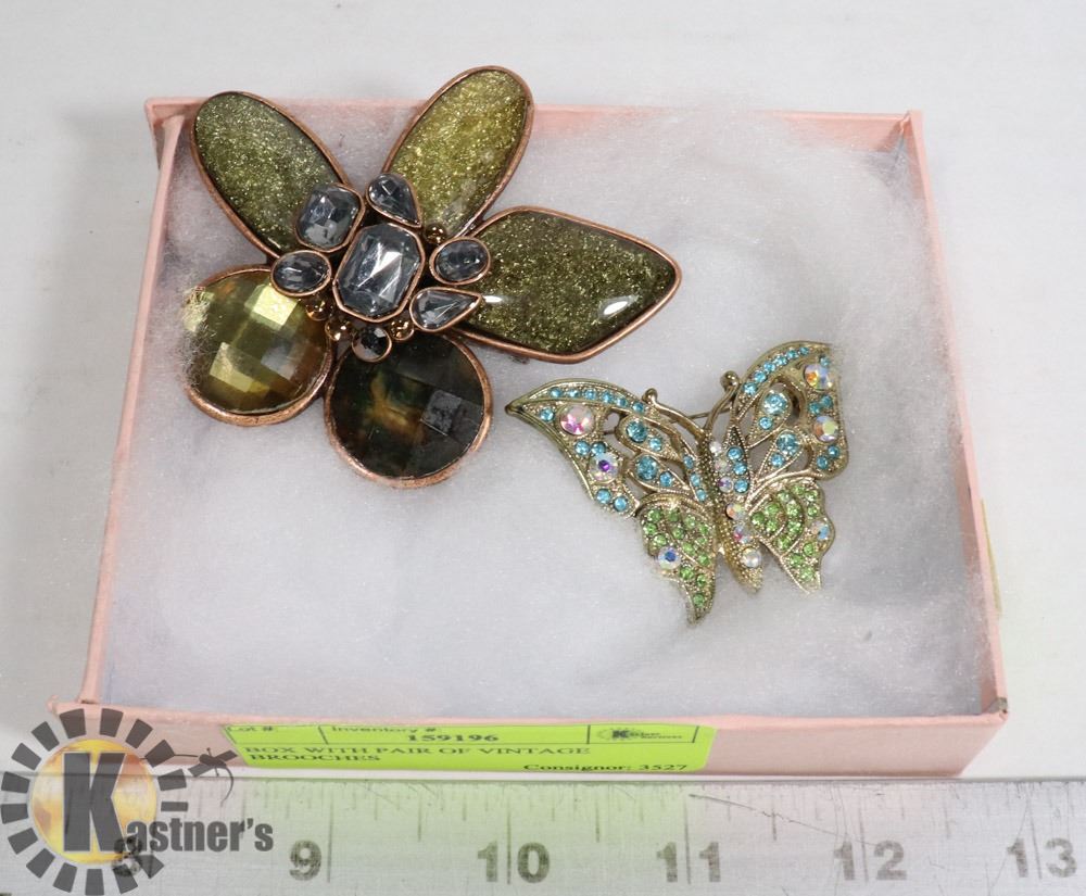 COLORFUL STONES BUTTERFLY AND LARGE STONED BROOCH