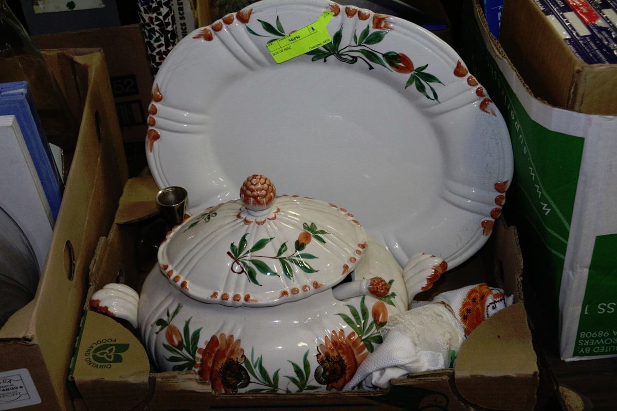 BOX WITH SOUP TOURRINE AND SERVING PLATTER ETC