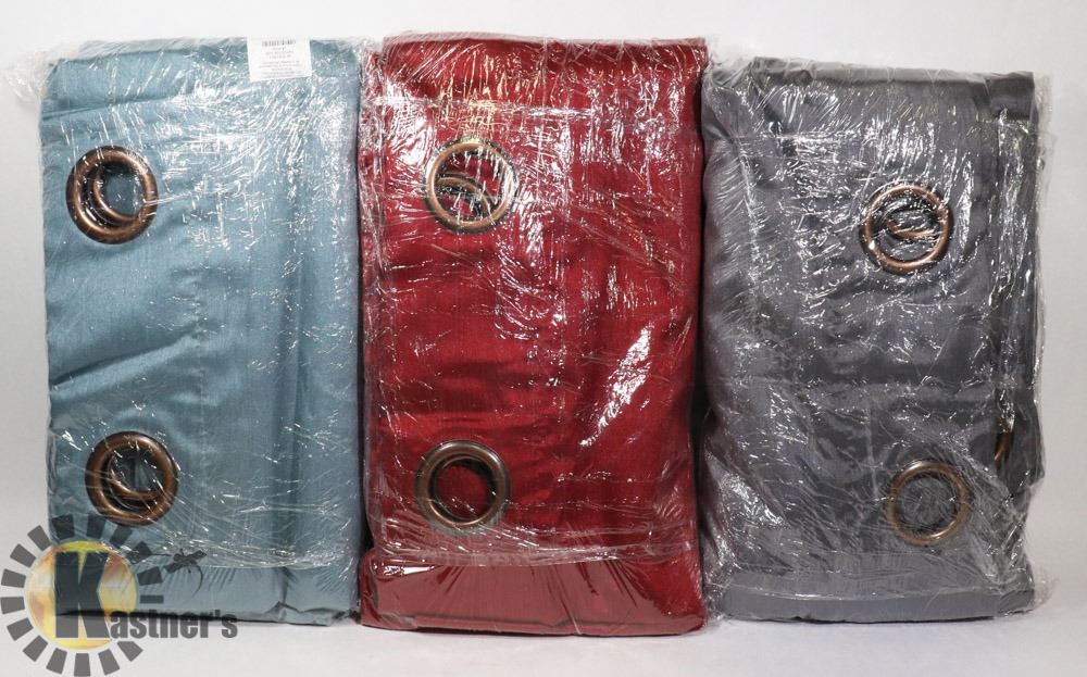 BOX WITH THREE CURTAIN SETS - RED, GREY &