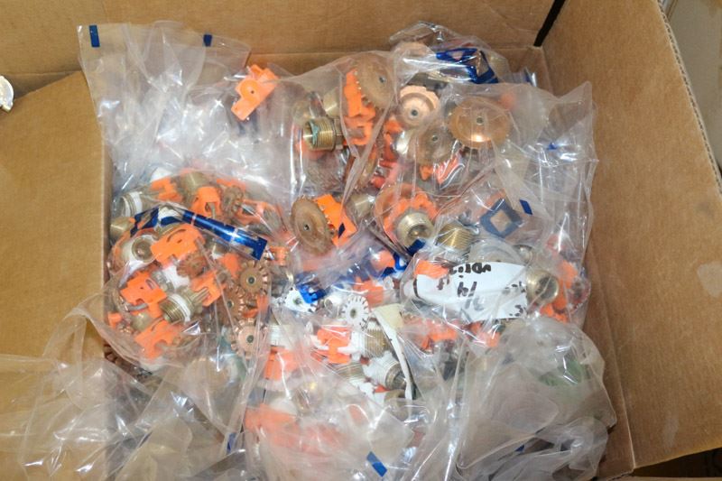 TOTAL APPROX WHOLESALE COST - $4677.00 / 138PC. 155° WHITE RES PENDENT HEADS, 25PC. 1 /2" WHITE FLAT CONCEALER COVERPLATE, 6PC. 155° BRASS UPRIGHT WAXED HEADS, 171PC. 155° BRASS STANDARD UPRIGHT HEADS, 89PC. 286° WHITE STANDARD PENDENT HEADS, 29PC. 286° BRASS QUICK RESPONSE UPRIGHT HEADS, 8PC. 155° CHROME QUICK RESPONSE UPRIGHT HEADS, 20PC. 155° CHROME STANDARD RESPONSE PENDENT HEADS, 33PC. 200° BRASS QUICK RESPONSE PENDENT HEADS, 21PC. 286° BRASS STANDARD UPRIGHT HEADS, 15PC. 200° BRASS STANDARD RESPONSE SIDEWALL HEADS, 12PC. 155° BRASS QUICK RESPONSE SIDEWALL HEADS, 23PC. 155° CHROME STANDARD RESPONSE PENDENT HEADS, 11PC. 155° WHITE QUICK RESPONSE PENDENT HEADS, 6PC. 155° CHROME QUICK RESPONSE PENDENT HEADS, 4PC. 200° BRASS STANDARD RESPONSE PENDENT HEADS, 6PC. 155° BRASS STANDARD RESPONSE UPRIGHT HEADS, 11PC. 155° CHROME QUICK RESPONSE UPRIGHT HEADS, 4PC. 155° BRASS QUICK RESPONSE SIDEWALL HEADS, 6PC. 155° BRASS STANDARD RESPONSE PENDENT 3/4" HEADS, 23PC. 135° WHITE RES SIDEWALL HEADS, 20PC. 175° WHITE RES PENDENT HEADS, 10PC. 155° WHITE QUICK RESPONSE PENDENT EC 3/4, 18PC. 155° CHROME QUICK RESPONSE UPRIGHT HEADS, 18PC. 175° WHITE RES PENDENT HEADS, 17PC. 155° WHITE RES PENDENT HEADS, 13PC. 200° BRASS RAW QUICK RESPONSE PENDENT HEADS