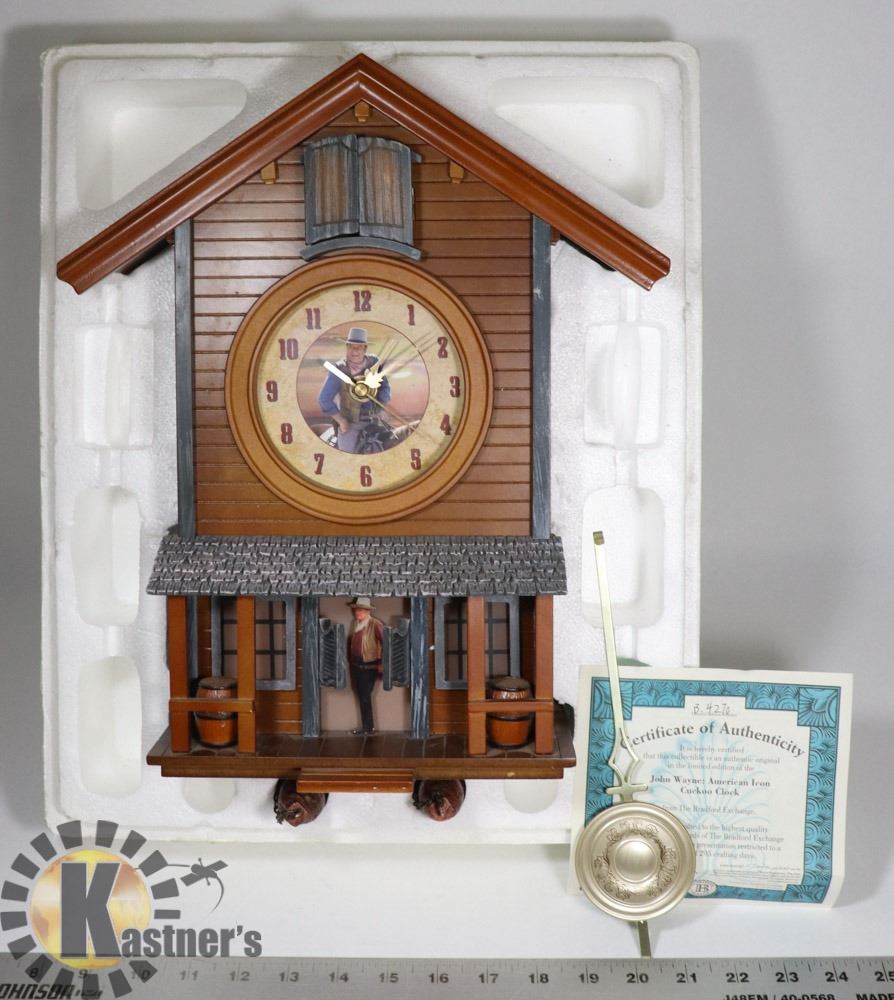 AMERICAN ICON COCKOO CLOCK HANDPAINTED 3C SCENE PROJECTING PORCH HORSE GALLOP SOUND "WORKING/TESTED" (NEW BATTERIES) W/COA. COLLECTIBLES