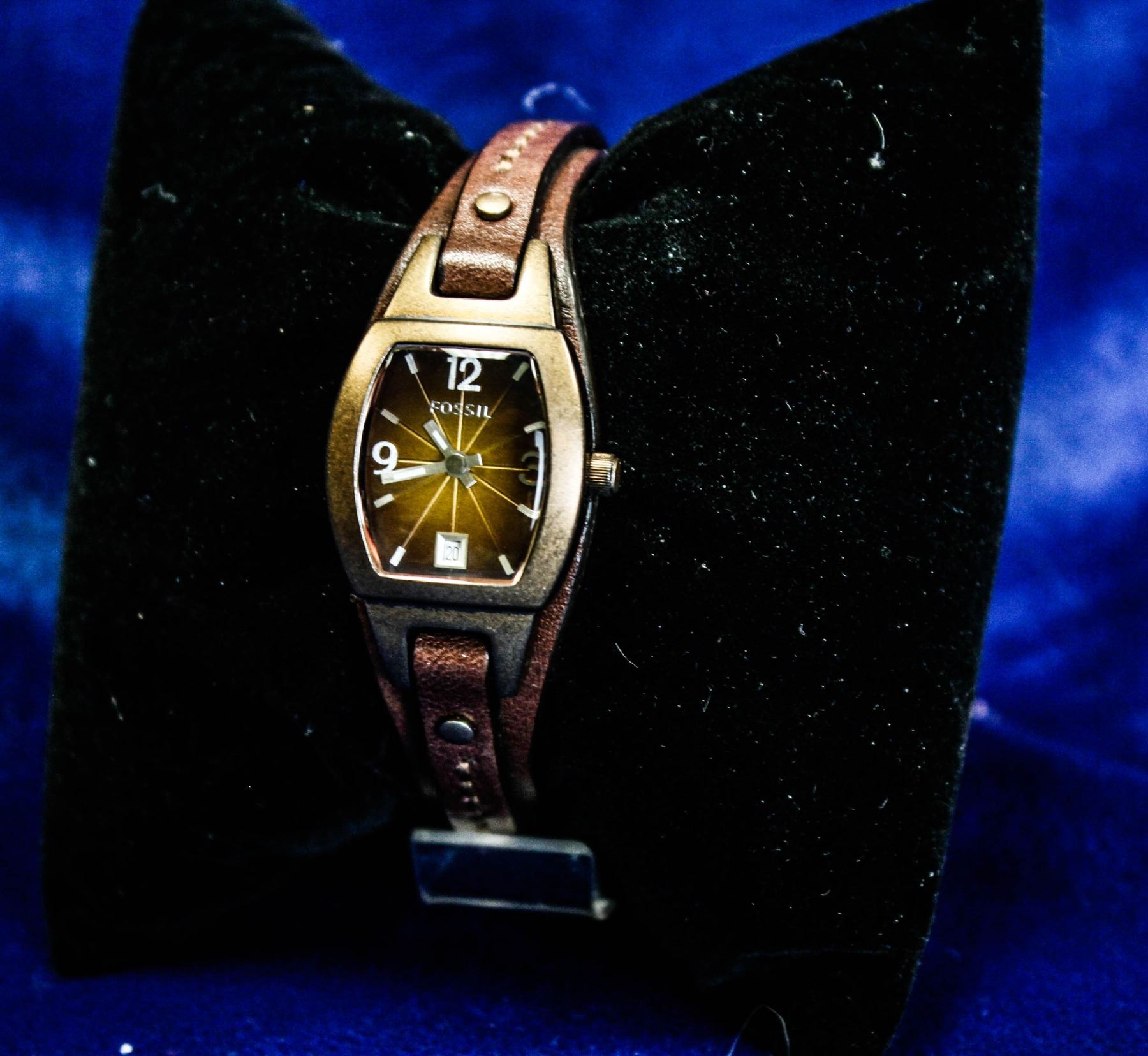 BRAND NAME FOSSIL WATCH, SMALL FACE WITH DATE