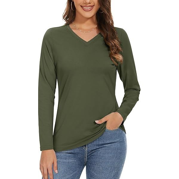 LONG SLEEVE VNECK SHIRT, OLIVE GREEN, AMZ SES