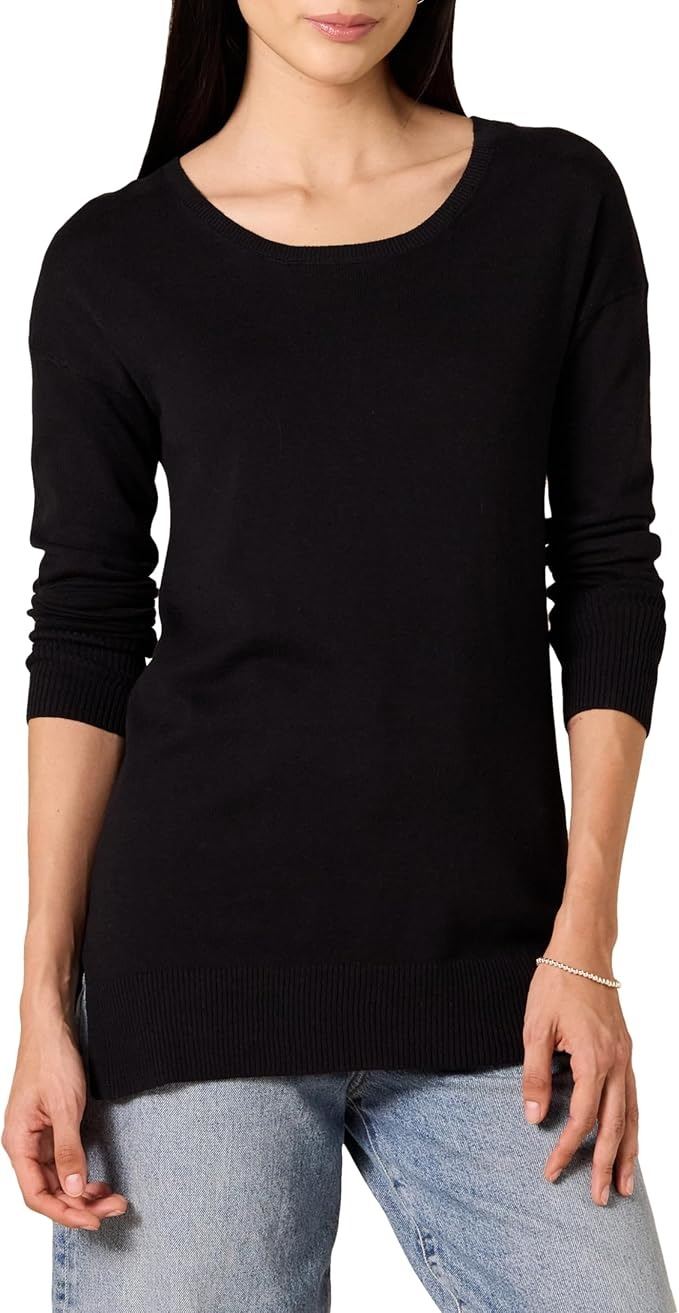 LONG SLEEVE SCOOP NECK TUNIC SWEATER, BLACK, AMZ SES