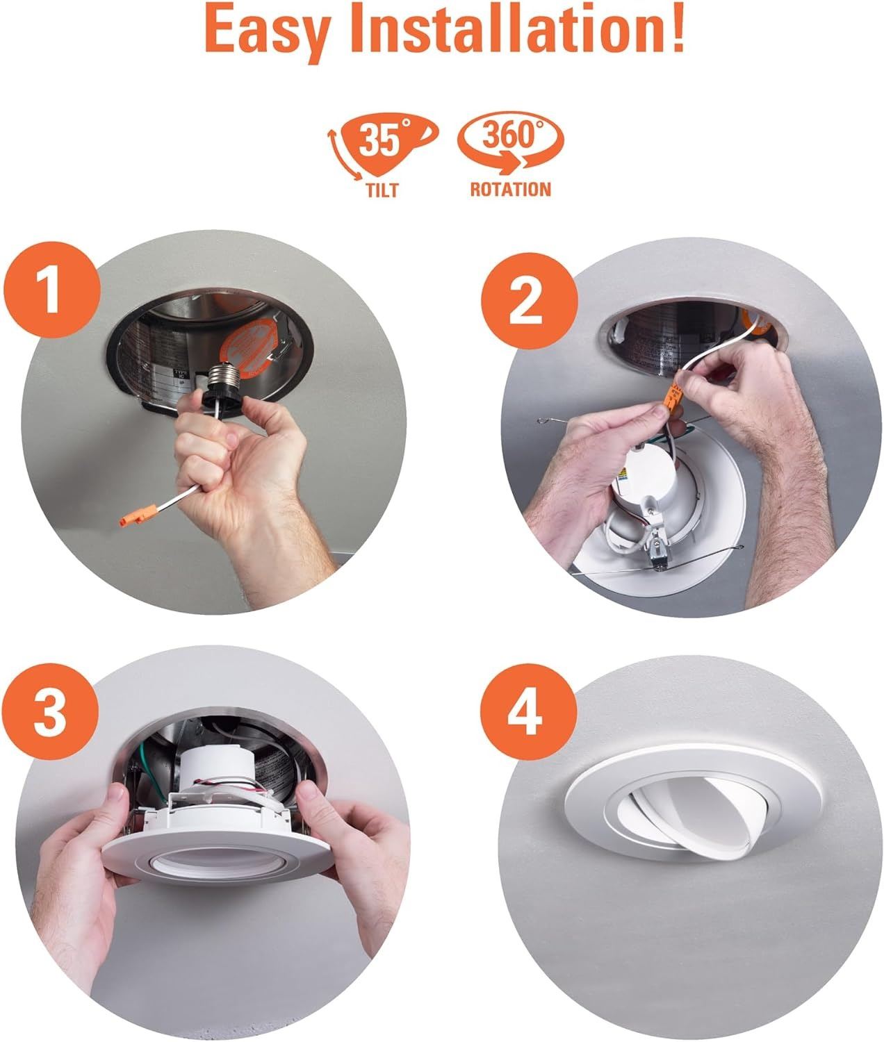 LED BULB & TRIM REPLACEMENT. 35 DEGREE TILT, 360 DEGREE ROTATION. SUITABLE FOR CEILINGS UP TO 9 FEET HIGH. 5 SELECTABLELIGHT COLOUR 3000K, 653 LUMENS, 7.2 WATTS. MSRP $50 AMZ SES